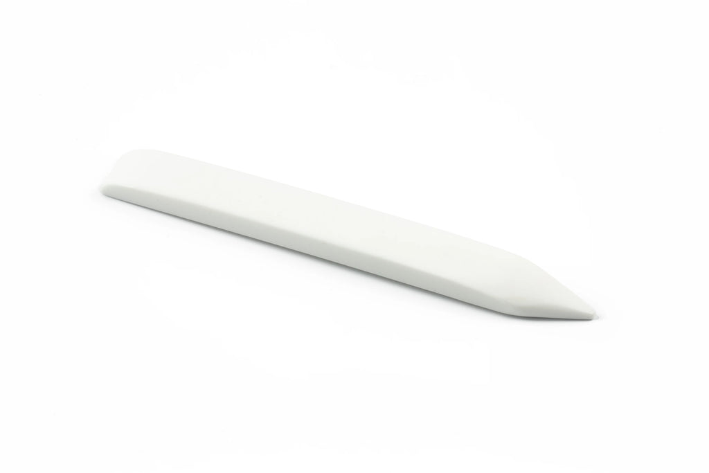 The folder is used by bookbinders, graphic artists and crafts people for creasing, folding and gluing materials together. The Teflon folder has a long and thin tapered end and the point is rounded and flexible allowing you to go into finer and thinner areas. The beauty of a Teflon folder is it prevents the paper from burnishing when using it. This is a great addition to any bookbinding tool collection.