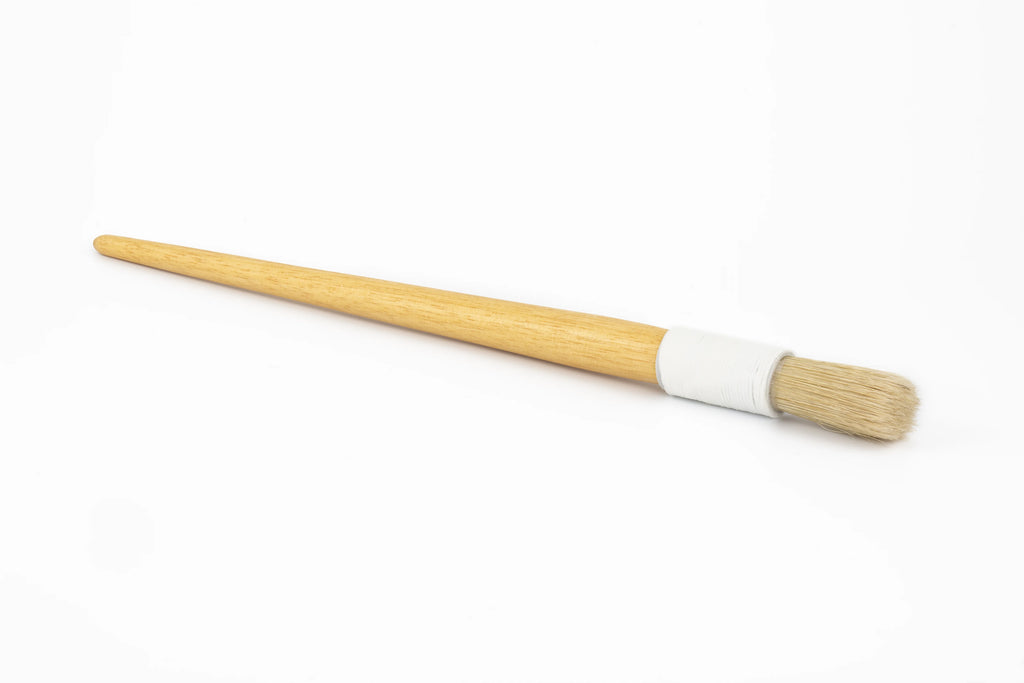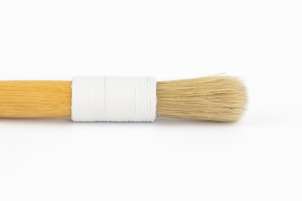 Archival paste brush. No metal parts, string bound, hog hair bristles.