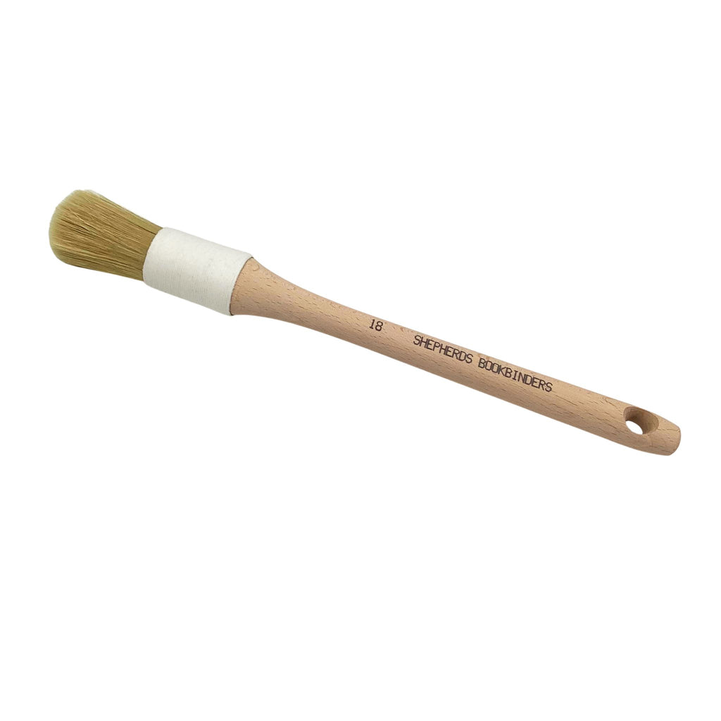 Archival paste brush. No metal parts, string bound, hog hair bristles.