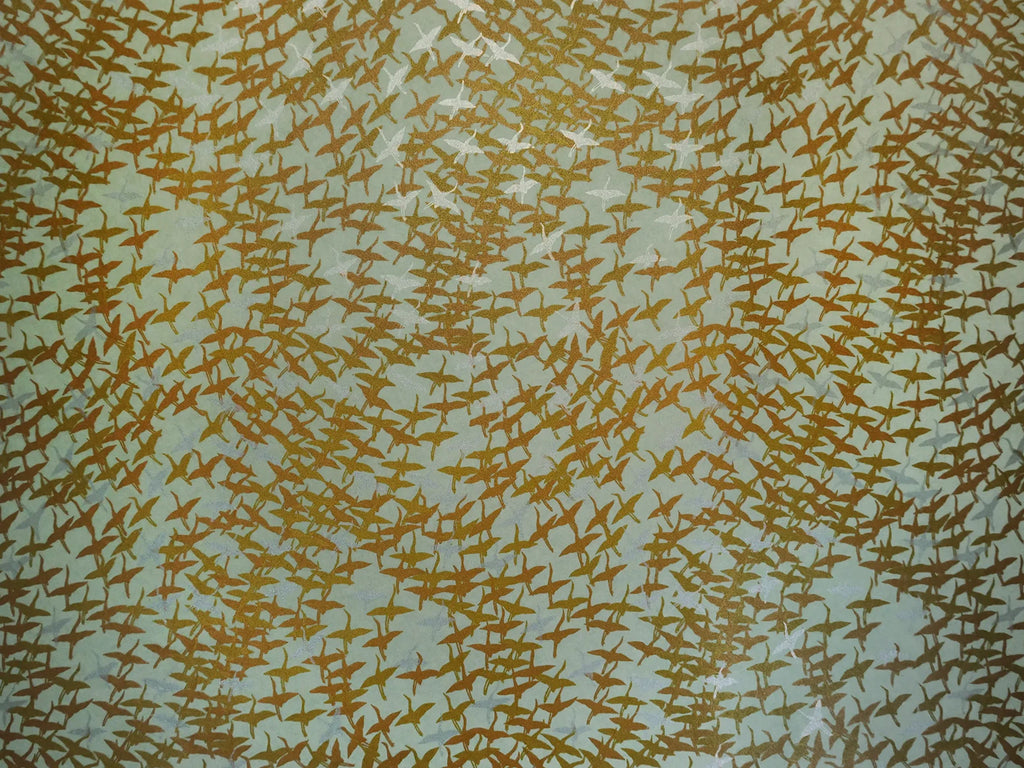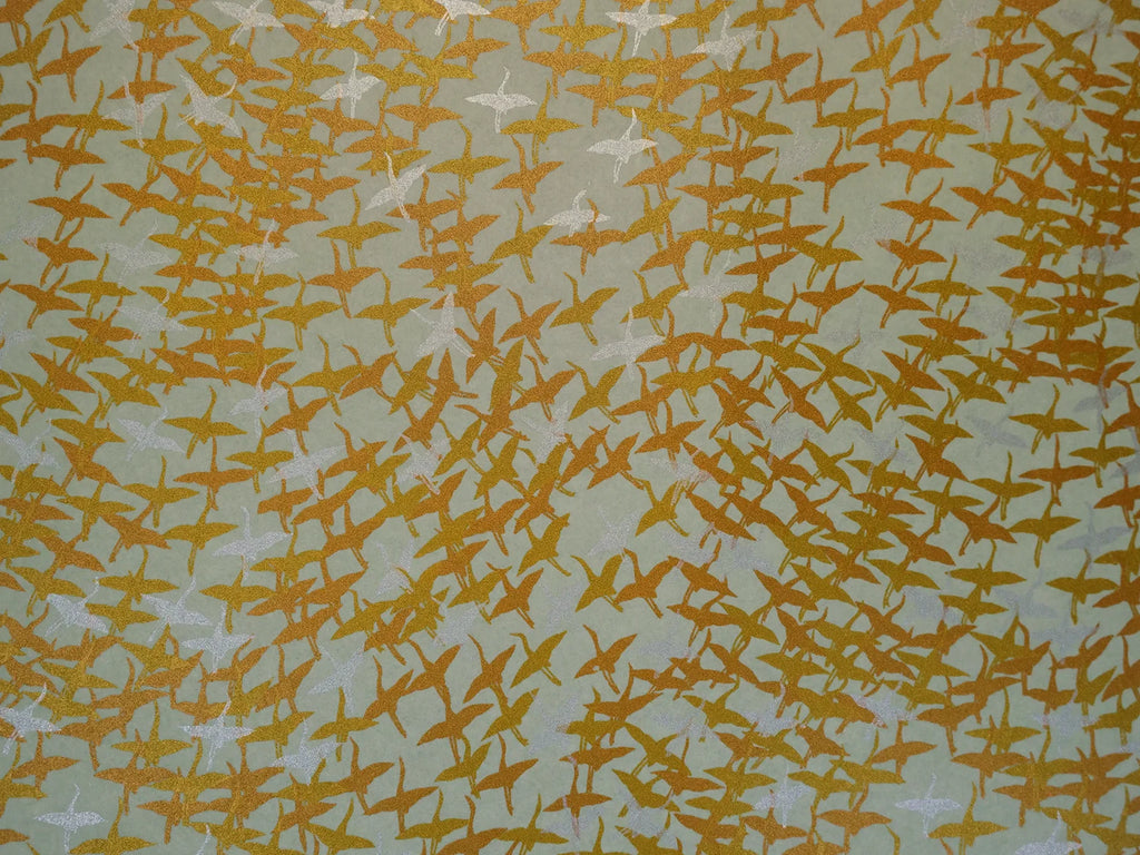 To create a sheet of Chiyogami, each colour is screen printed by hand, most patterns having 4 or 5 colours, some as many as 12. Each sheet must be dried between applications and the next colour registered with fine precision.
