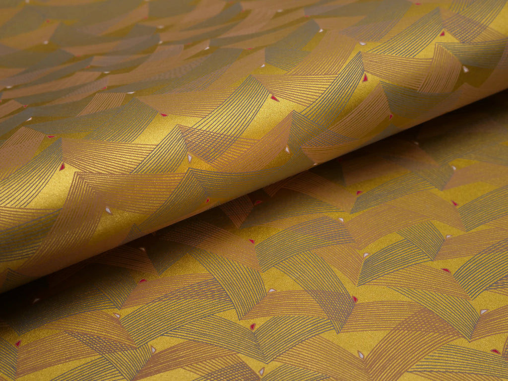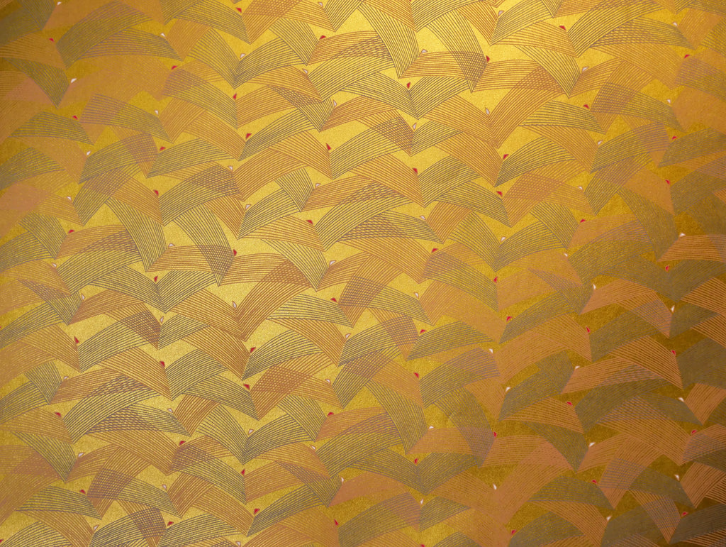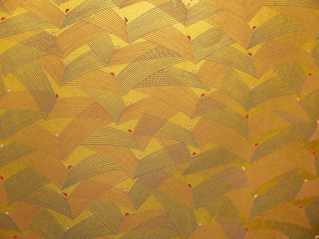 To create a sheet of Chiyogami, each colour is screen printed by hand, most patterns having 4 or 5 colours, some as many as 12. Each sheet must be dried between applications and the next colour registered with fine precision.