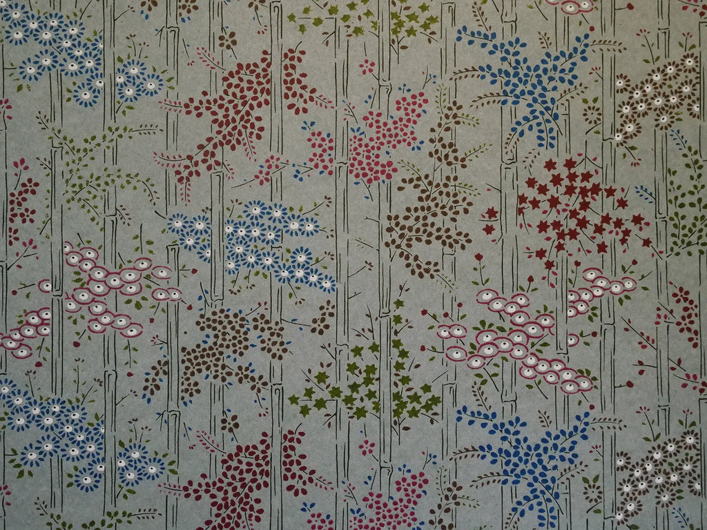 To create a sheet of Chiyogami, each colour is screen printed by hand, most patterns having 4 or 5 colours, some as many as 12. Each sheet must be dried between applications and the next colour registered with fine precision.