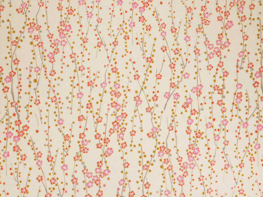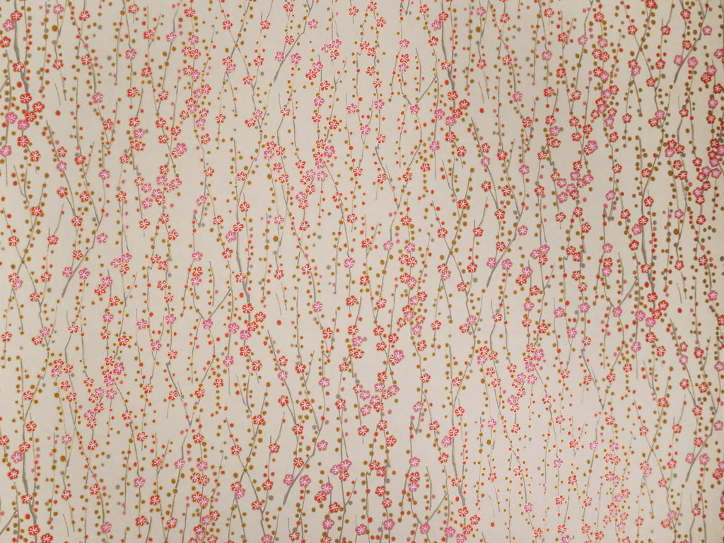 To create a sheet of Chiyogami, each colour is screen printed by hand, most patterns having 4 or 5 colours, some as many as 12. Each sheet must be dried between applications and the next colour registered with fine precision.