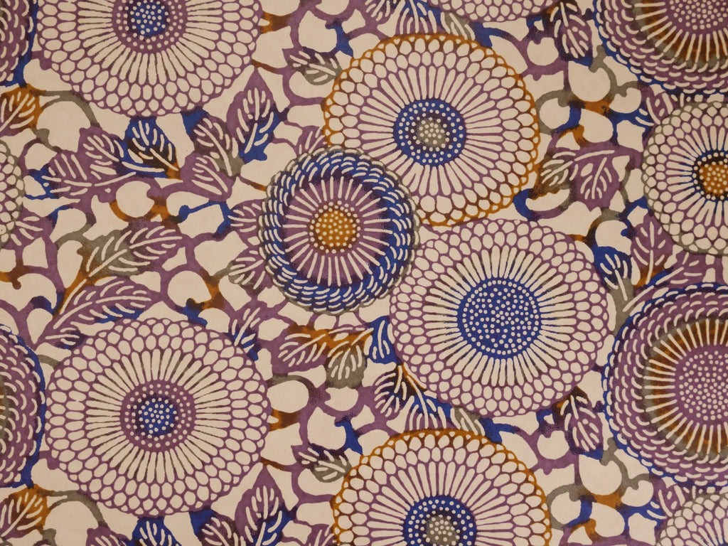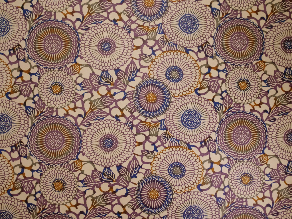 To create a sheet of Chiyogami, each colour is screen printed by hand, most patterns having 4 or 5 colours, some as many as 12. Each sheet must be dried between applications and the next colour registered with fine precision.