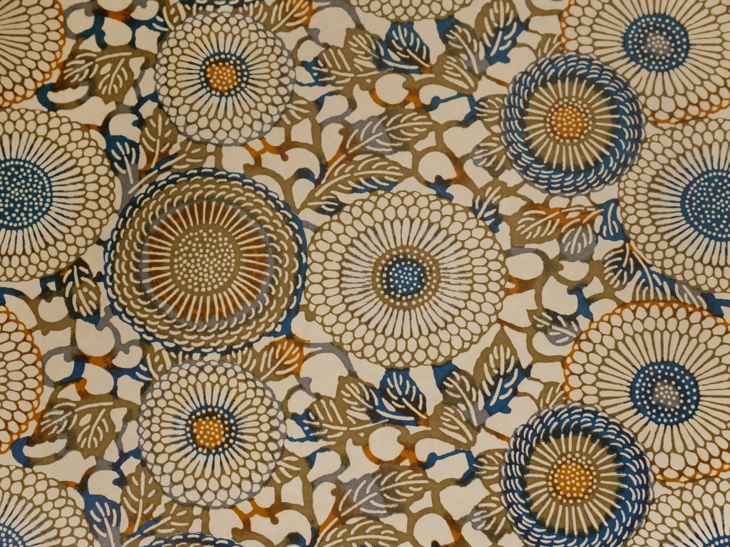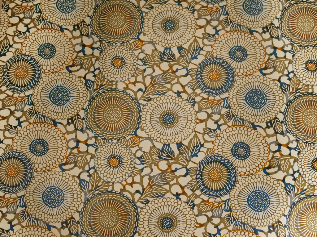 To create a sheet of Chiyogami, each colour is screen printed by hand, most patterns having 4 or 5 colours, some as many as 12. Each sheet must be dried between applications and the next colour registered with fine precision.