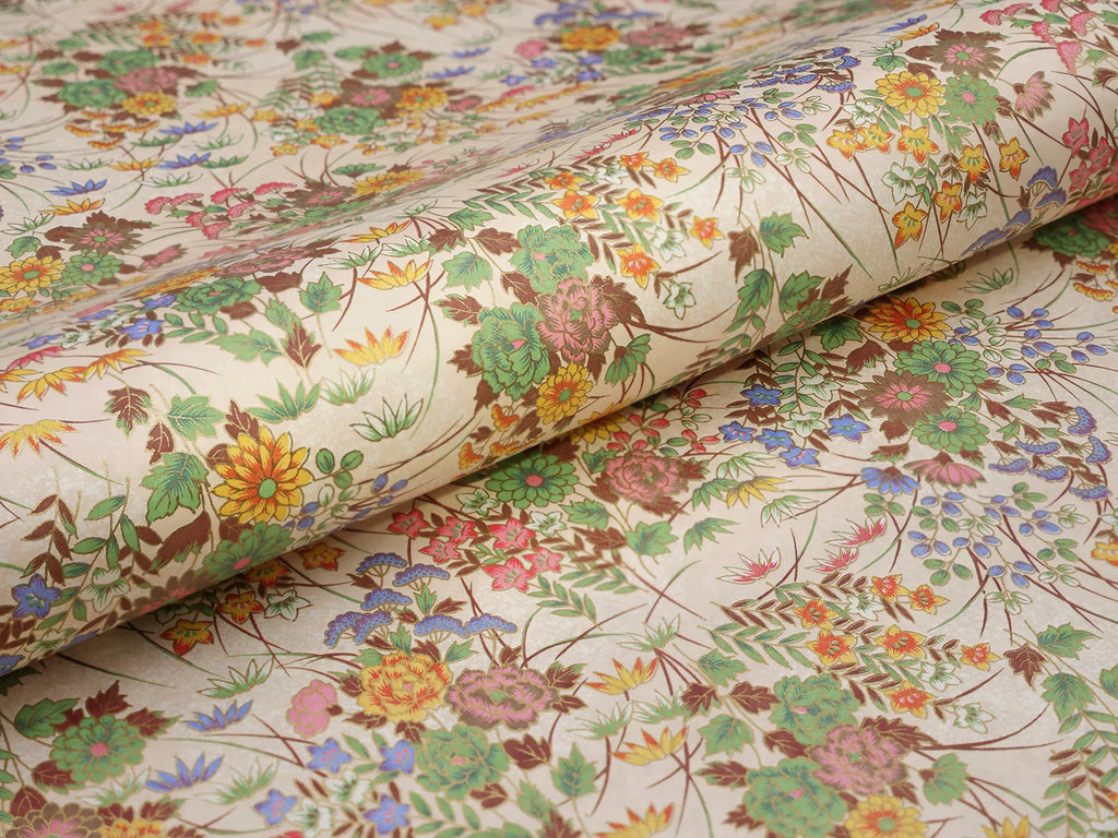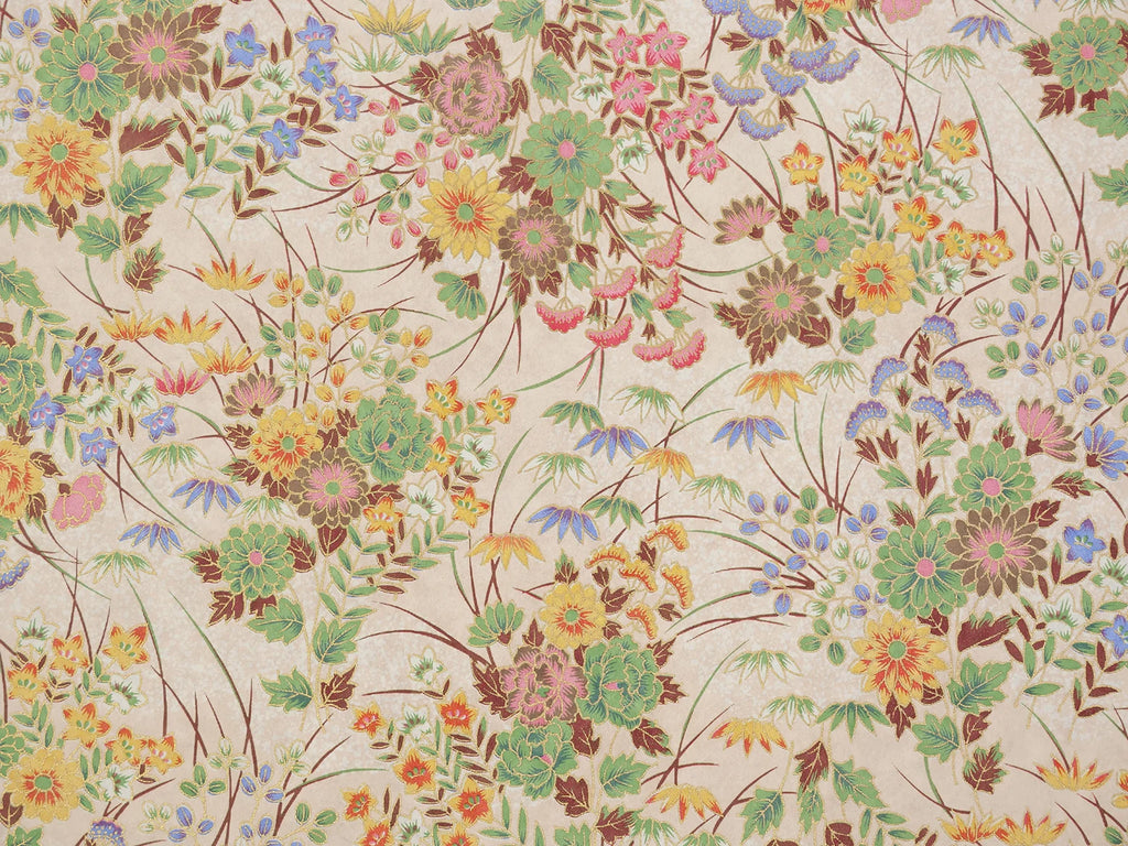 To create a sheet of Chiyogami, each colour is screen printed by hand, most patterns having 4 or 5 colours, some as many as 12. Each sheet must be dried between applications and the next colour registered with fine precision.