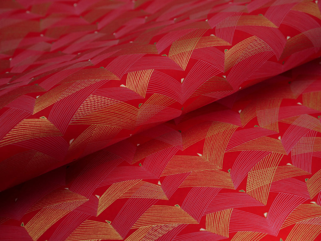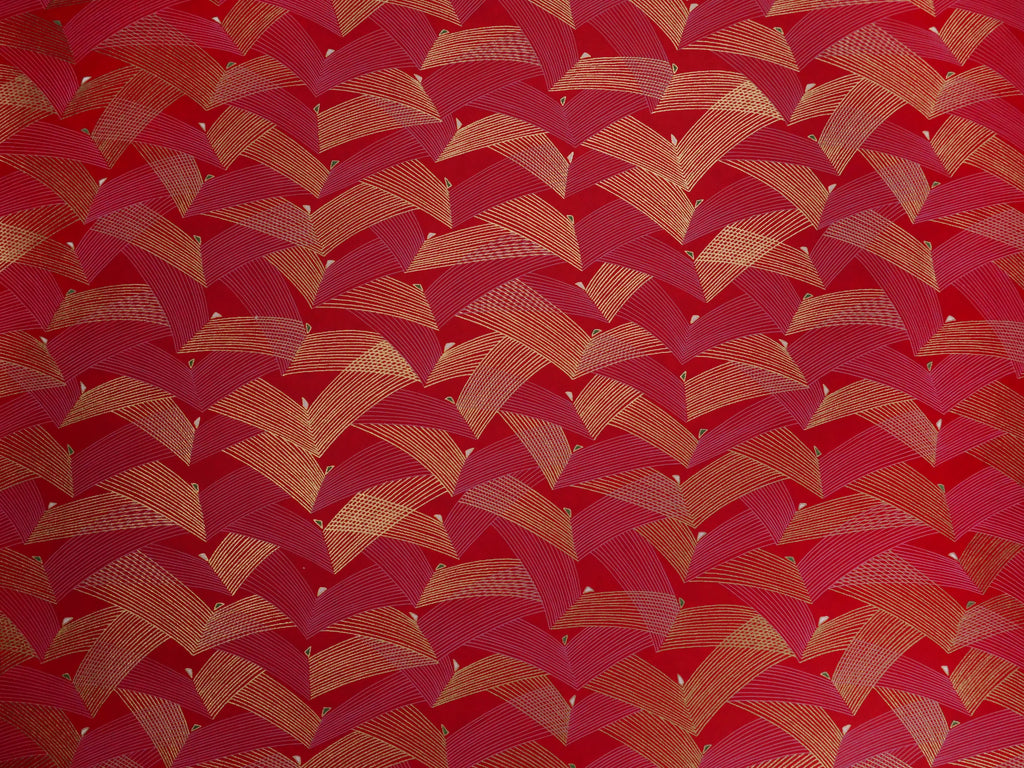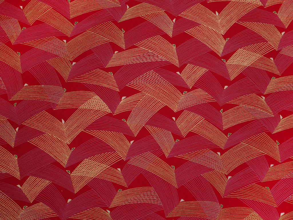 To create a sheet of Chiyogami, each colour is screen printed by hand, most patterns having 4 or 5 colours, some as many as 12. Each sheet must be dried between applications and the next colour registered with fine precision.