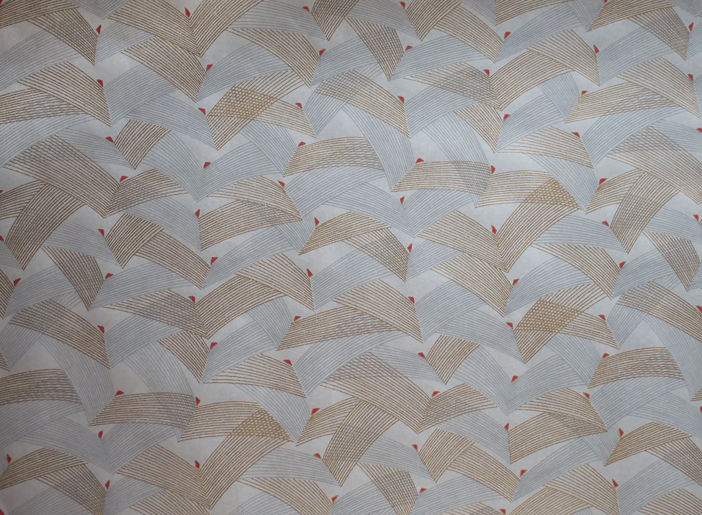 To create a sheet of Chiyogami, each colour is screen printed by hand, most patterns having 4 or 5 colours, some as many as 12. Each sheet must be dried between applications and the next colour registered with fine precision.