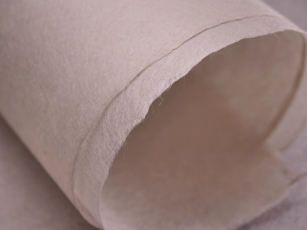 It was developed particularly for use in Chine Collé , but is appropriate for many other uses including drawing and collage. It is also strong enough to be used as a stand-alone paper for printmaking. This paper has a fine, even surface and crisp feel. The fibre is cooked with caustic soda and dyed with direct synthetic dyes.