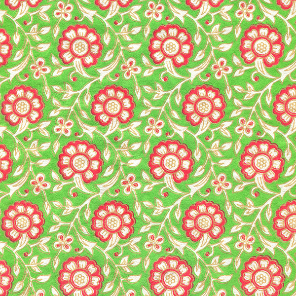 These wonderful papers are hand made in Nepal and India. Full of character, the base papers are made from lokta plant fibres. The patterns are applied by screen printing each colour separately in the traditional way. Due to their hand made quality each sheet can vary a little in colour and finish. Each sheet has four deckled edges. The producers of these papers are members of the Fair Trade Group Nepal and maintain Fair Trade practices in India.