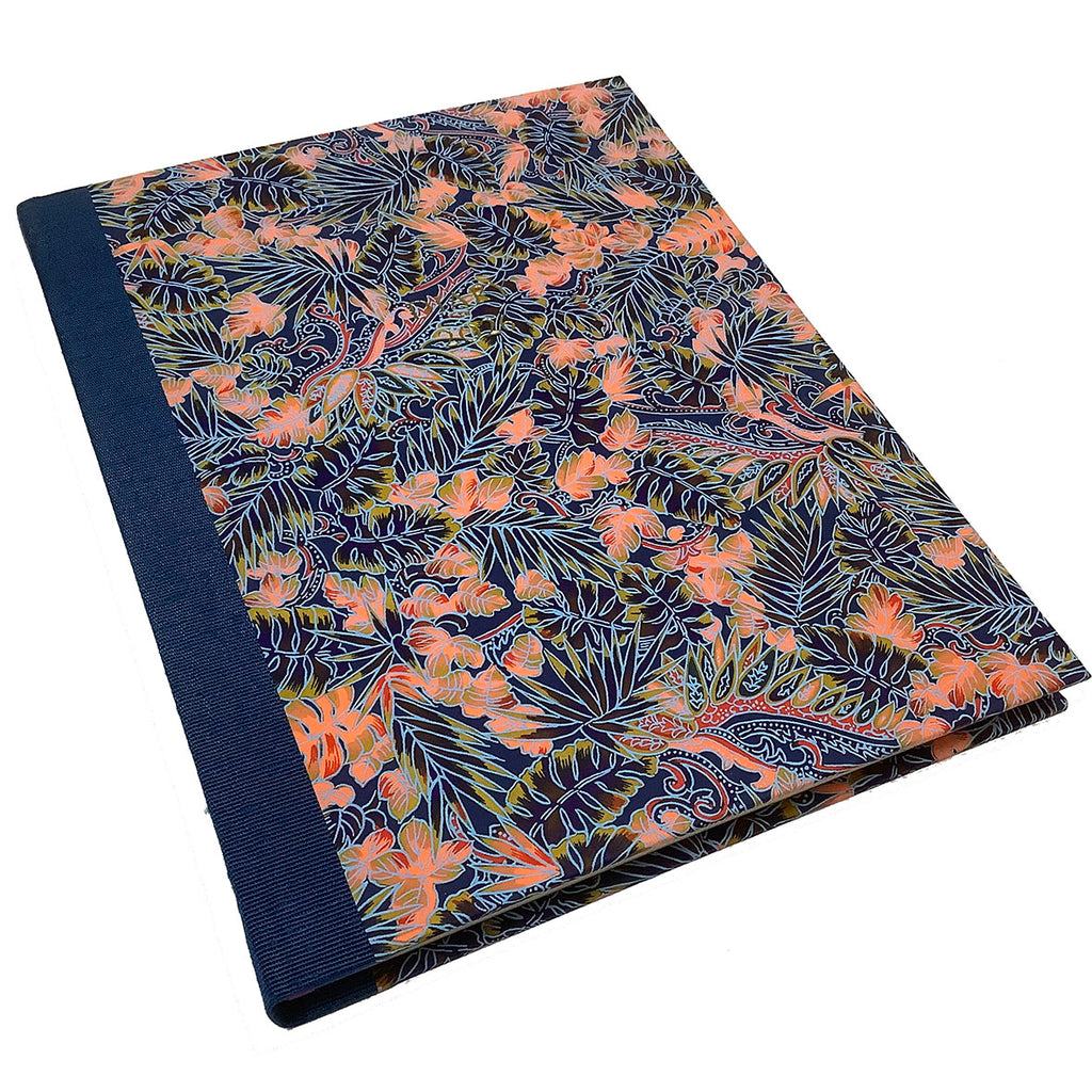 Beautifully bound in Japanese hand screen-printed Chiyogami paper with a silk cloth spine, grosgrain ribbon marker and gold tooling to the front.