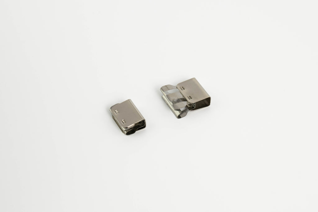 Silver metal clampy reusable paper clip - ideal for binding single sheets.