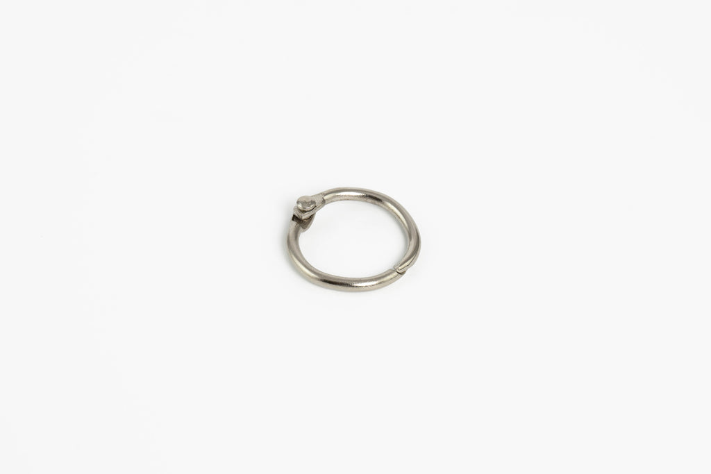 Hinged steel rings for binding and display uses.