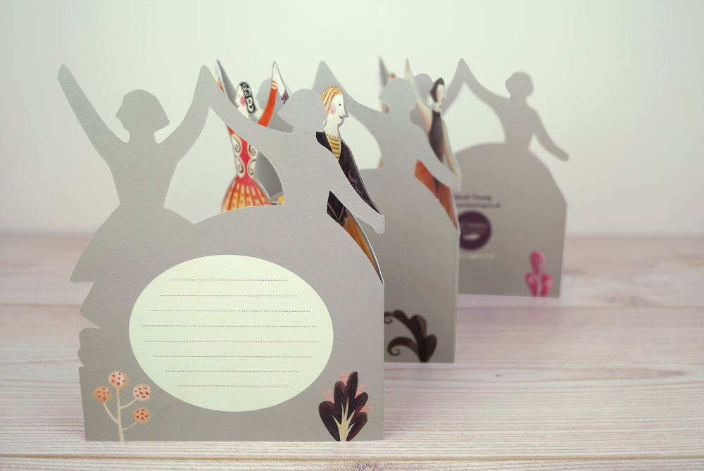 Die cut chain of dancing ladies by Sarah Young. There is a space on the reverse for a personal message.