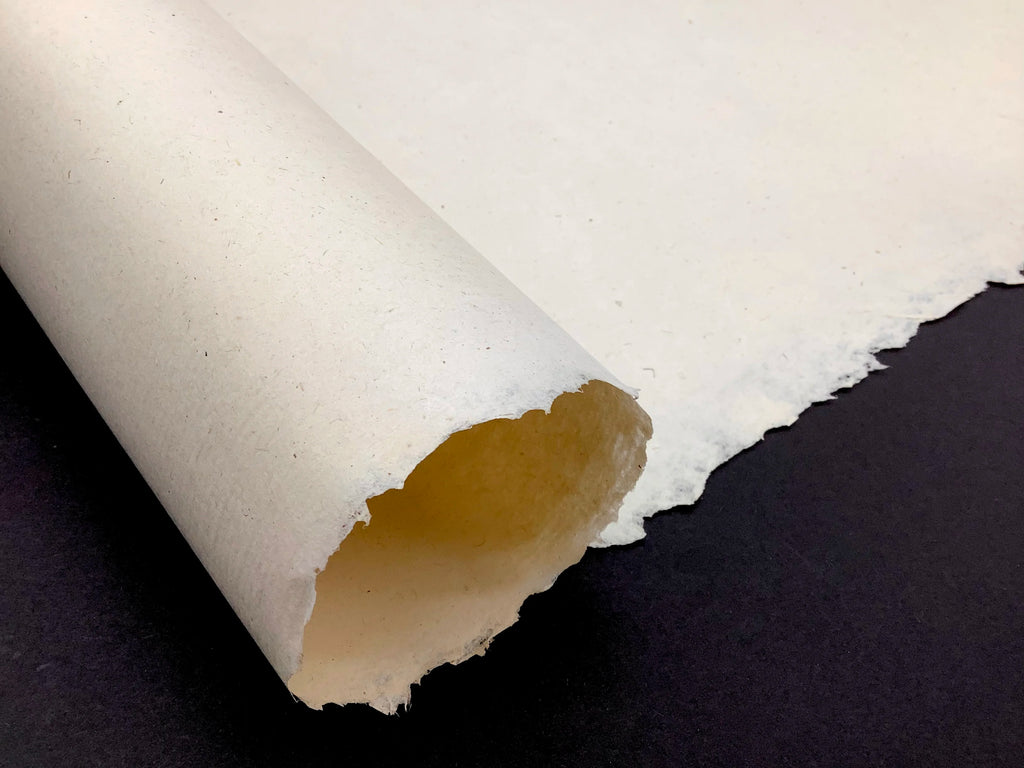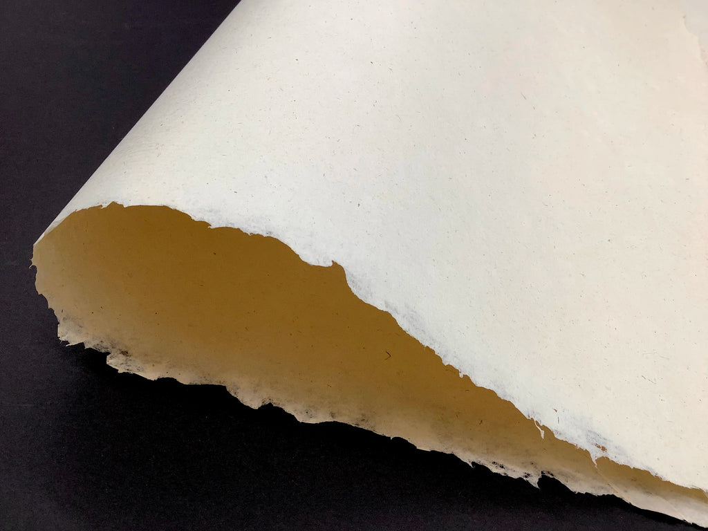 Sheets are made from hemp fibre and formed on a chapri, a screen of grass stems, giving them a characteristic laid pattern.