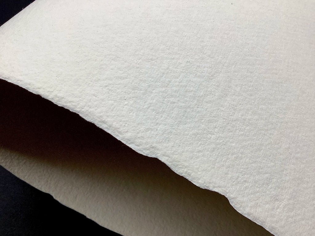 Artists’ handmade paper made from 100% long fibred cotton rag. Genuine rag papers are rare and it is the fibre length of this raw material that gives Khadi rag papers their exceptional strength and durability.