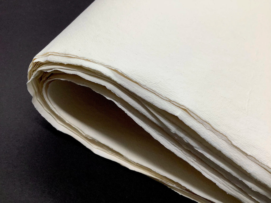 Artists’ handmade paper made from 100% long fibred cotton rag. Genuine rag papers are rare and it is the fibre length of this raw material that gives Khadi rag papers their exceptional strength and durability.