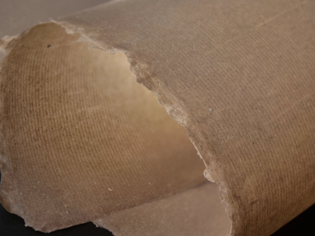Made from raw unspun flax (linen fibres), this paper is very strong with a unique aesthetic - something of a hybrid between paper, parchment and leather.