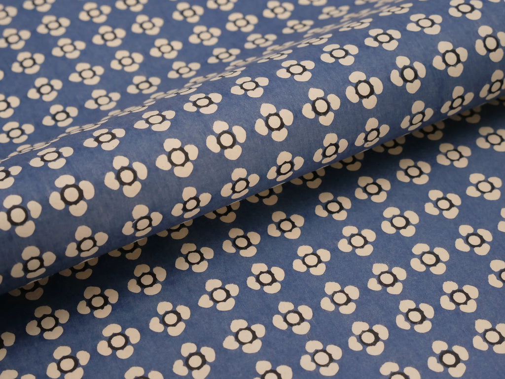 These elegant, boldly-patterned papers are made entirely by hand and are time-consuming to produce. The base paper is first treated with soy juice to allow the pigments to bind with the paper. A resist paste is printed through a hand-cut stencil onto the treated paper and allowed to dry before the soy-based colours are stencilled on. After these colours, too, have dried, the paste resist is washed off to reveal the white, or paper-coloured areas of the pattern. The strength and ageless beauty of these special papers makes them great for book covers and boxes, cards, collage, lampshades and more.