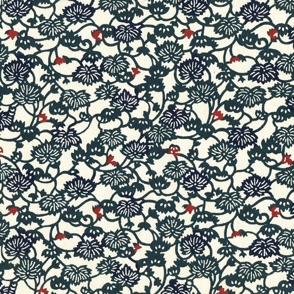 These elegant, boldly-patterned papers are made entirely by hand and are time-consuming to produce. The base paper is first treated with soy juice to allow the pigments to bind with the paper. A resist paste is printed through a hand-cut stencil onto the treated paper and allowed to dry before the soy-based colours are stencilled on. After these colours, too, have dried, the paste resist is washed off to reveal the white, or paper-coloured areas of the pattern. The strength and ageless beauty of these special papers makes them great for book covers and boxes, cards, collage, lampshades and more.