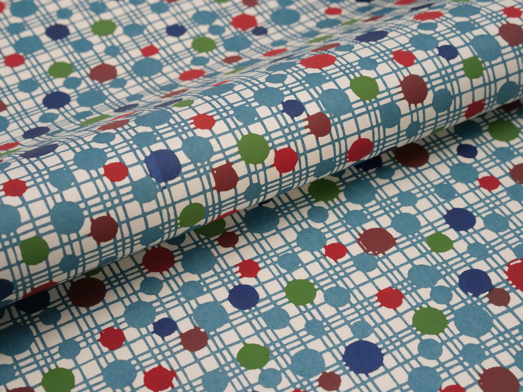These elegant, boldly-patterned papers are made entirely by hand and are time-consuming to produce. The base paper is first treated with soy juice to allow the pigments to bind with the paper. A resist paste is printed through a hand-cut stencil onto the treated paper and allowed to dry before the soy-based colours are stencilled on. After these colours, too, have dried, the paste resist is washed off to reveal the white, or paper-coloured areas of the pattern. The strength and ageless beauty of these special papers makes them great for book covers and boxes, cards, collage, lampshades and more.