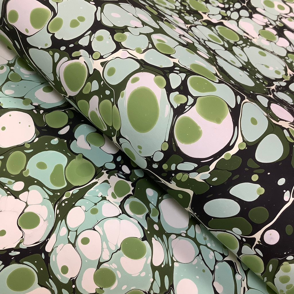 A green spot pattern, hand marbled in Brazil. All rights reserved ©