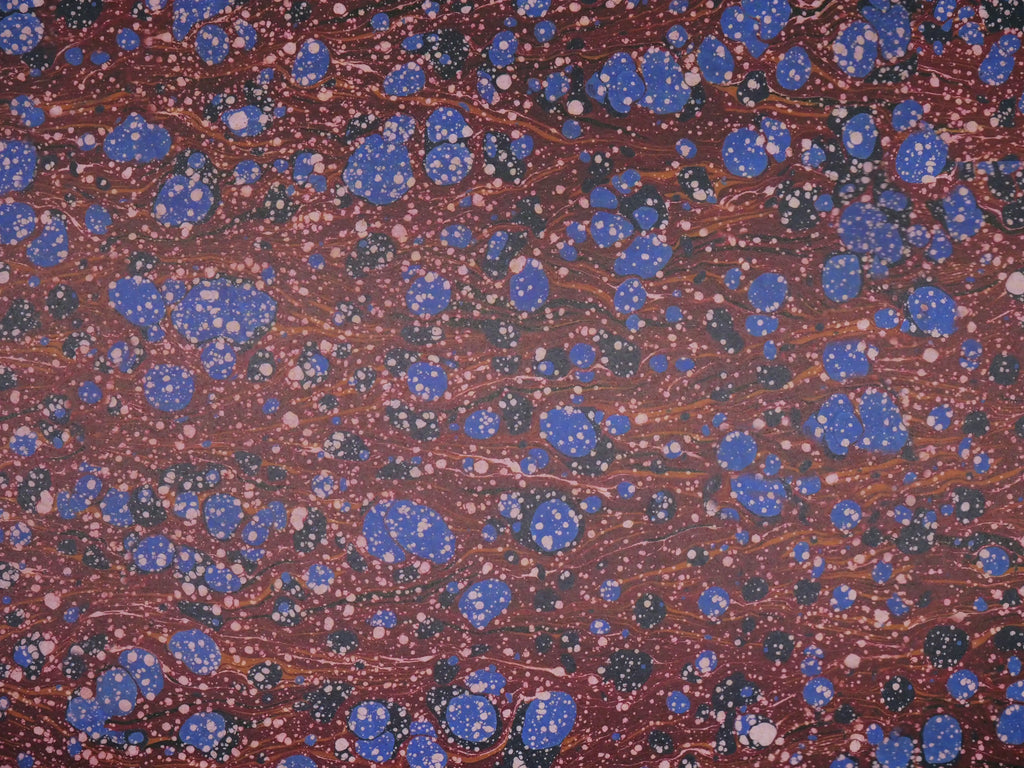 A range of facsimile period marbled papers litho printed with a typical vintage style sheen on the decorative side.