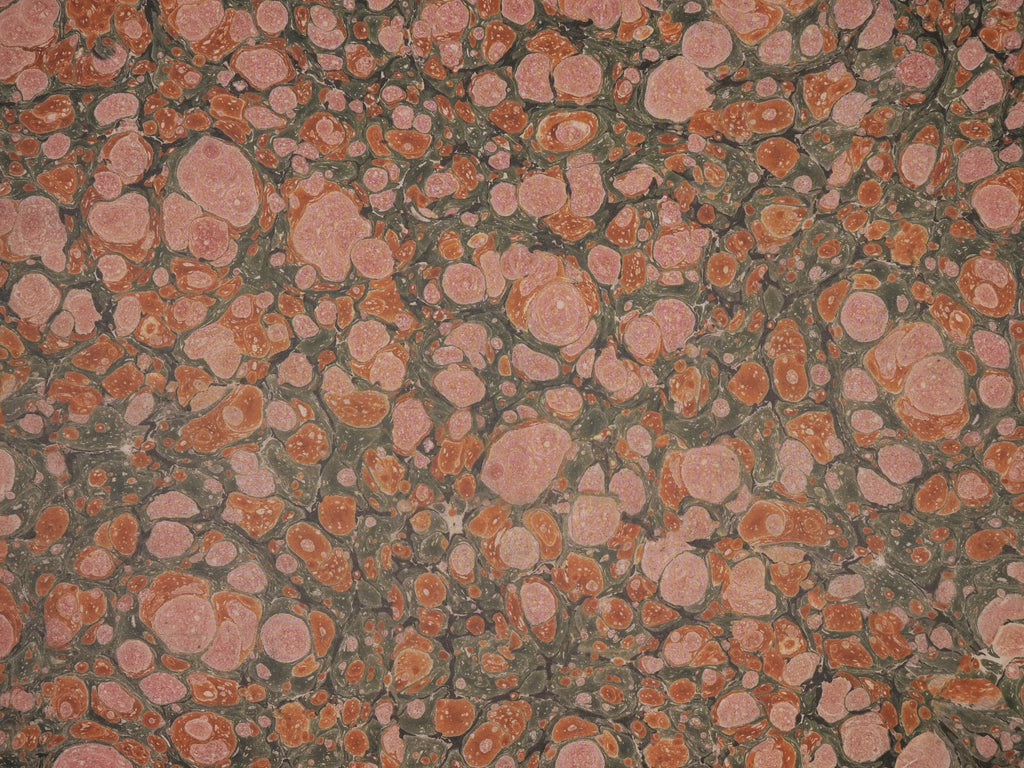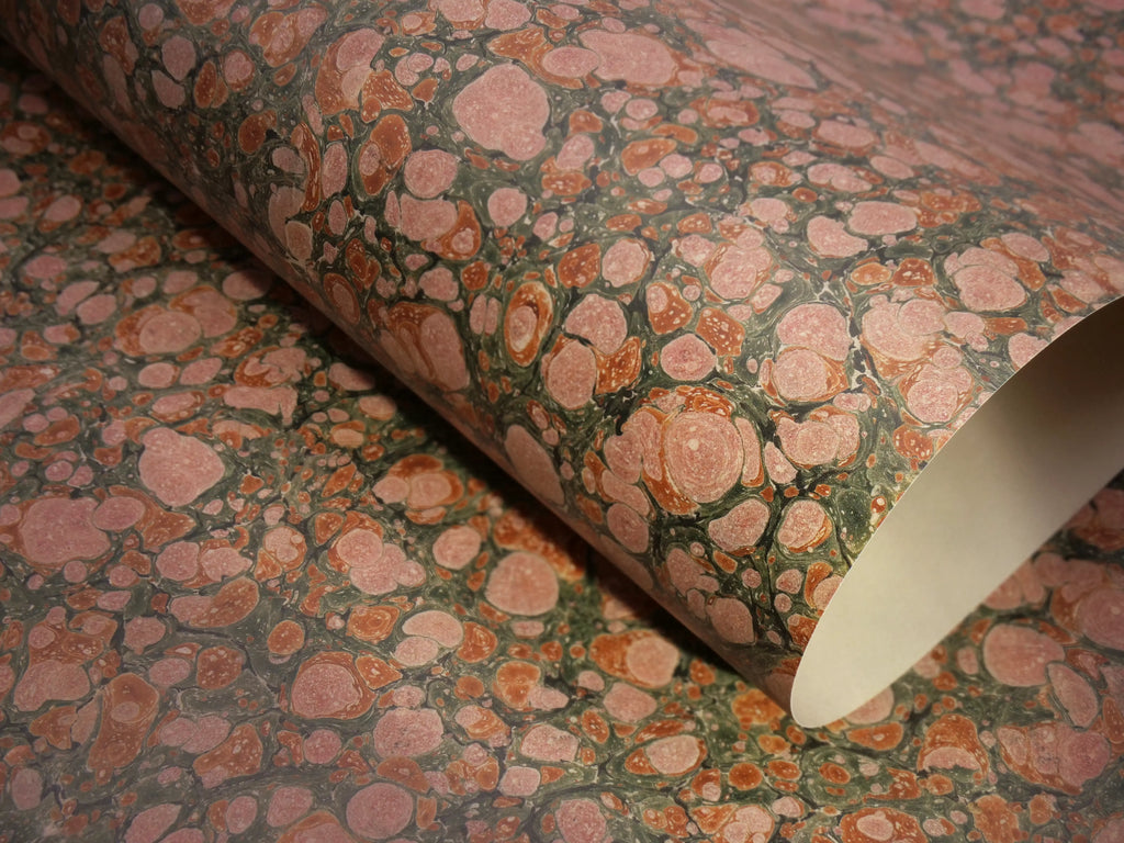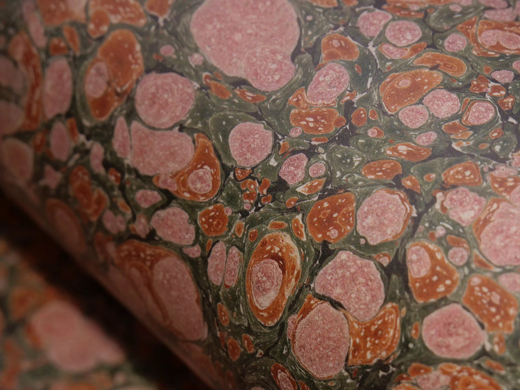 A range of facsimile period marbled papers litho printed with a typical vintage style sheen on the decorative side.
