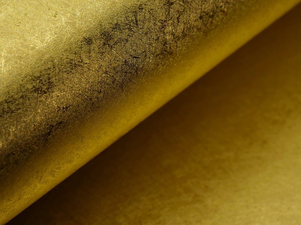 Fine metallic surface backed with plain white paper. Design imitates the Japanese "Unryu" (Cloud Dragon) with a subtle brushed look. Extremely distinctive from flatter metallic papers more widely available.