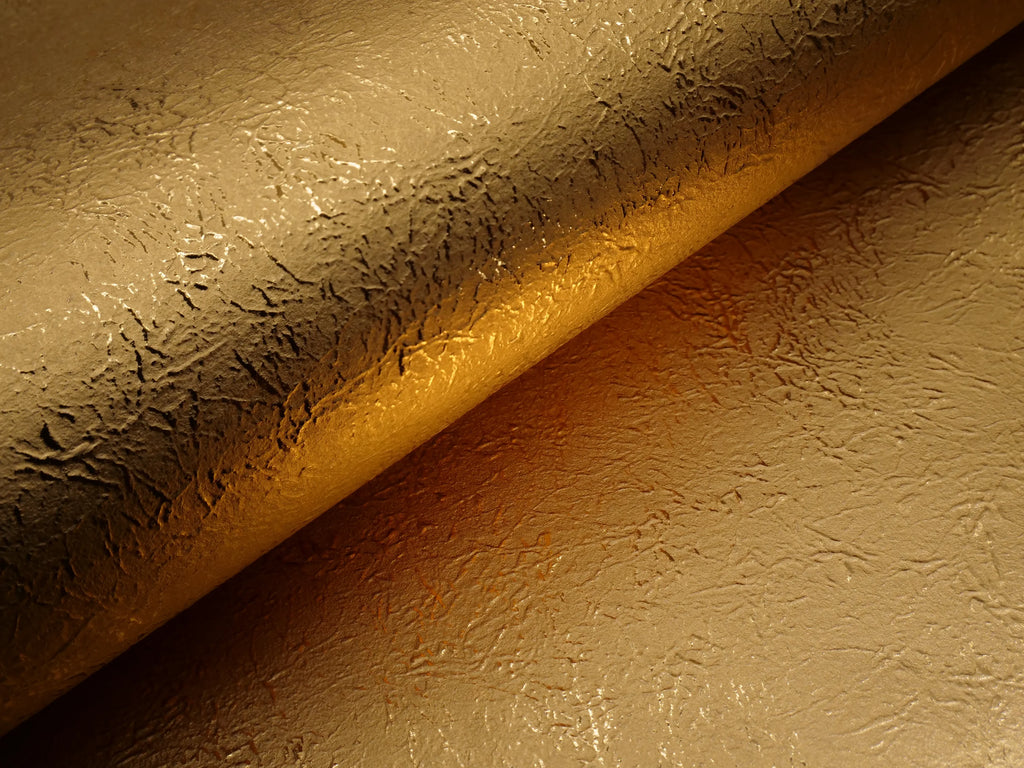Fine metallic surface backed with plain white paper. Design imitates the Japanese "Unryu" (Cloud Dragon) with a subtle brushed look. Extremely distinctive from flatter metallic papers more widely available.