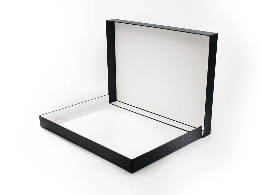 Sleeve model - sized to house A3 documents stored inside our clear archival sleeves. (search APS15 on our website) Lined with archival barrier board, these drop back boxes are often used as a high quality presentation or portfolio box.