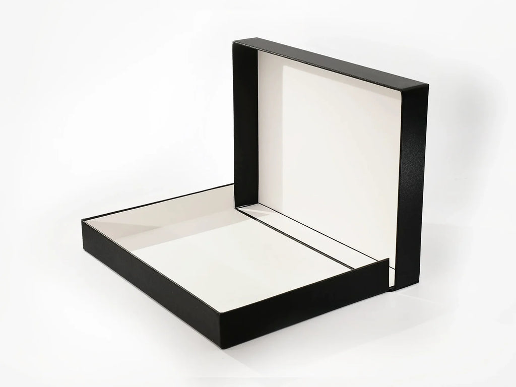Sleeve model - sized to house A4 documents stored inside our clear archival sleeves. (search APS08 on our website) Lined with archival barrier board, these drop back boxes are often used as a high quality presentation or portfolio box.