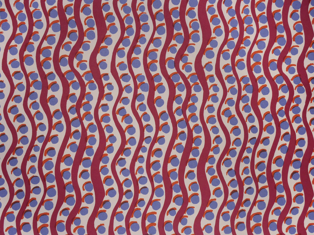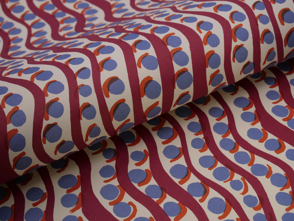 Simple hand-stencilled screen-printing is used to create the original designs, and then spot-colour lithography to replicate that studio process in manufacturing the final paper product. The result is a matte paper of unparalleled intensity and clarity of colour.
