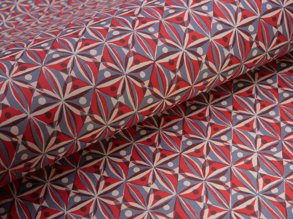 Simple hand-stencilled screen-printing is used to create the original designs, and then spot-colour lithography to replicate that studio process in manufacturing the final paper product. The result is a matte paper of unparalleled intensity and clarity of colour.