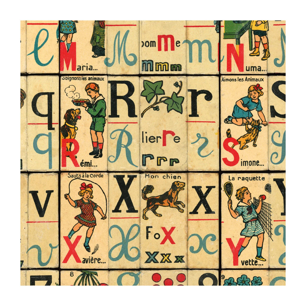 Designed by Marcus Davies from a collection of French ‘Vive la paix’ play bricks dating to the 1920s.