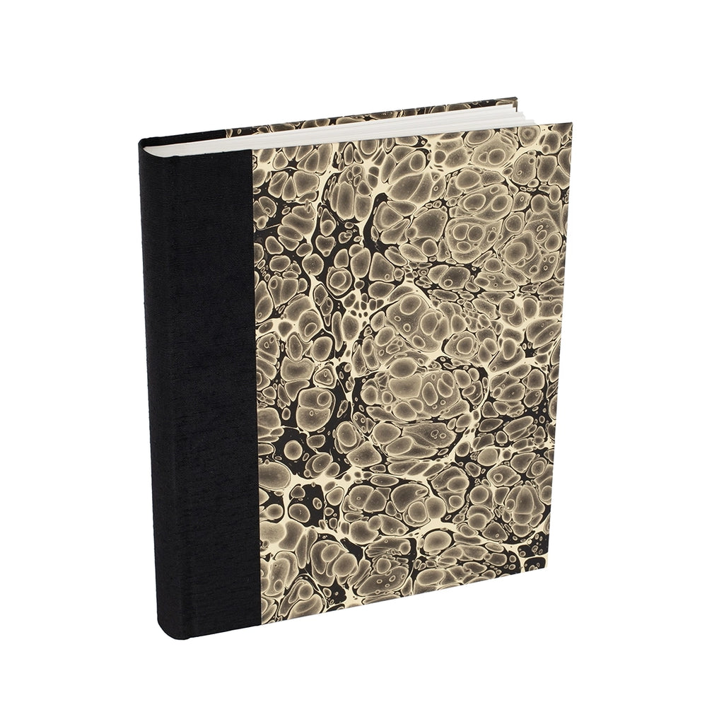 With a Japanese linen bookcloth spine and beautiful hand marbled paper sides.