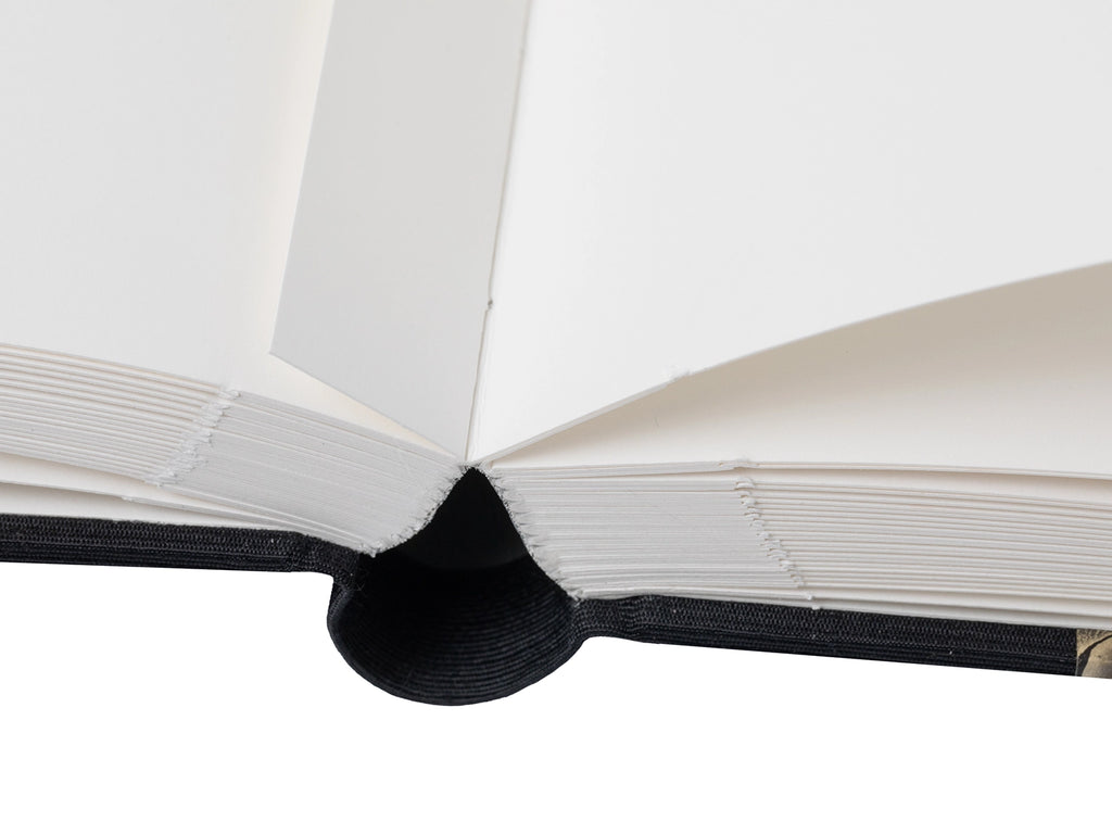 Contains 44 leaves of smooth ivory 320gsm card with 25mm compensation guards to prevent swell when the book is full.