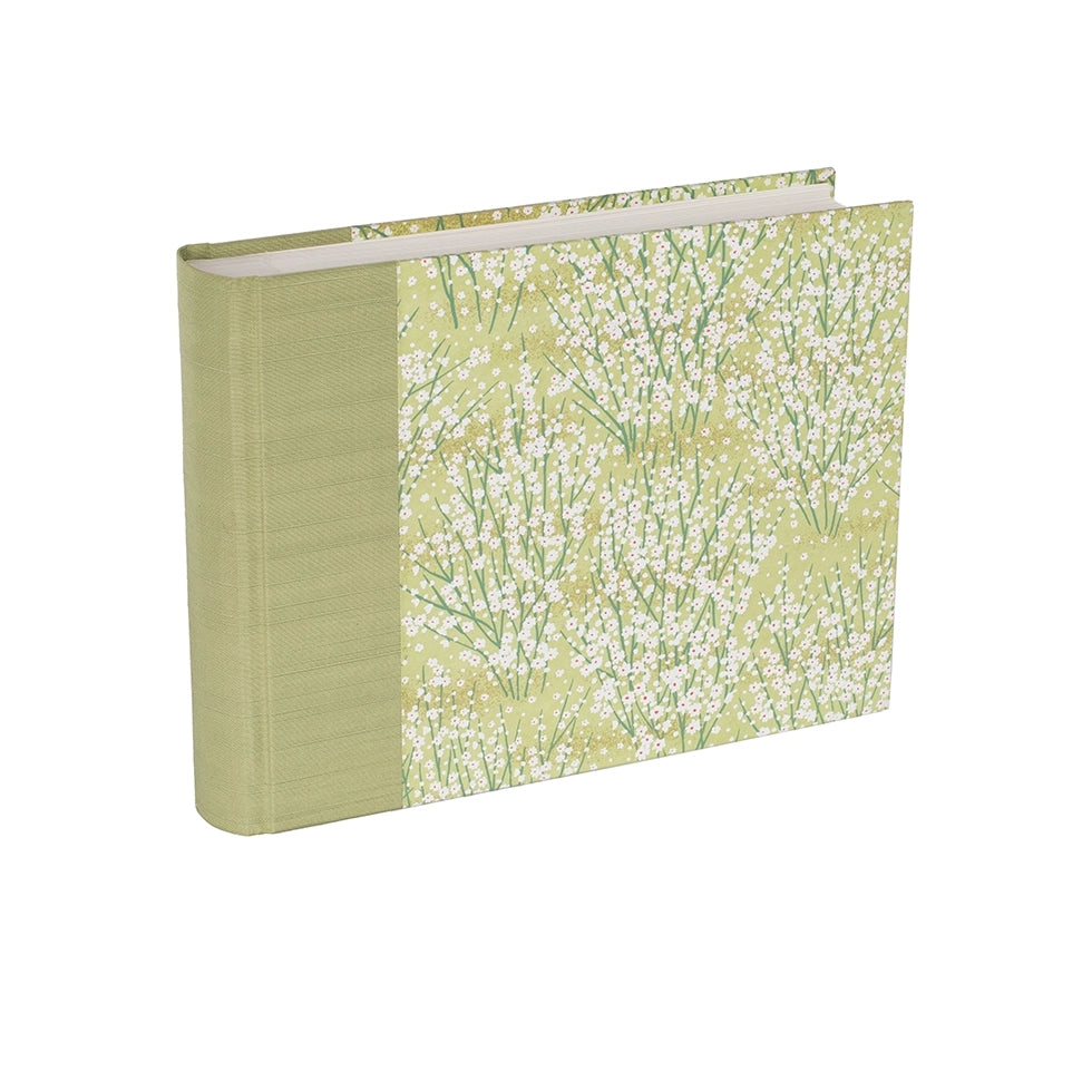 With a Japanese silk bookcloth spine and beautiful Chiyogami Japanese paper sides.