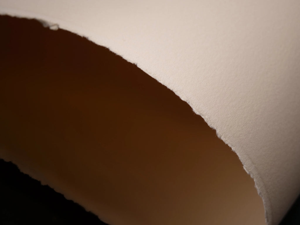 Rives BFK is the paper of choice in lithography, etching, silkscreening, block printing, monotypes, and bookbinding. Vellum surface, two natural deckles and two tear deckles.