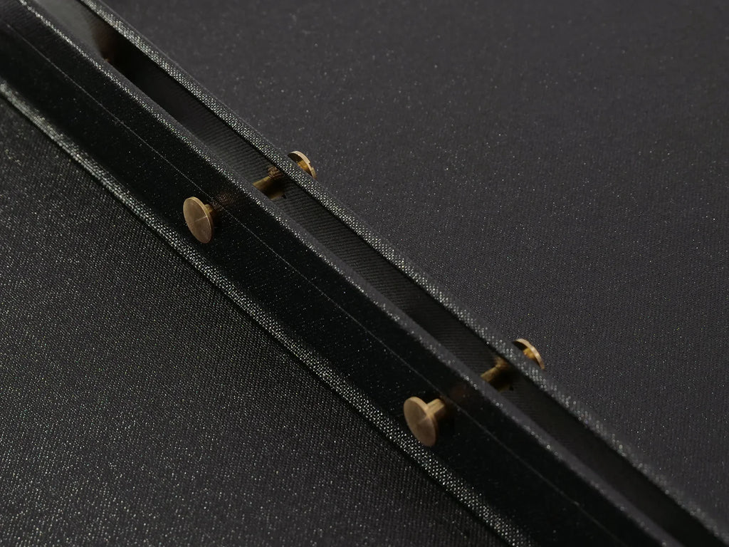 Sized to fit A4 (210 x 297mm) sheets with a standard 2 hole punch on the short edge / left hand side of each sheet. The portfolio includes a complimentary pair of 25mm screw & post mechanisms in a choice of brass or nickel - please specify which you prefer at checkout.