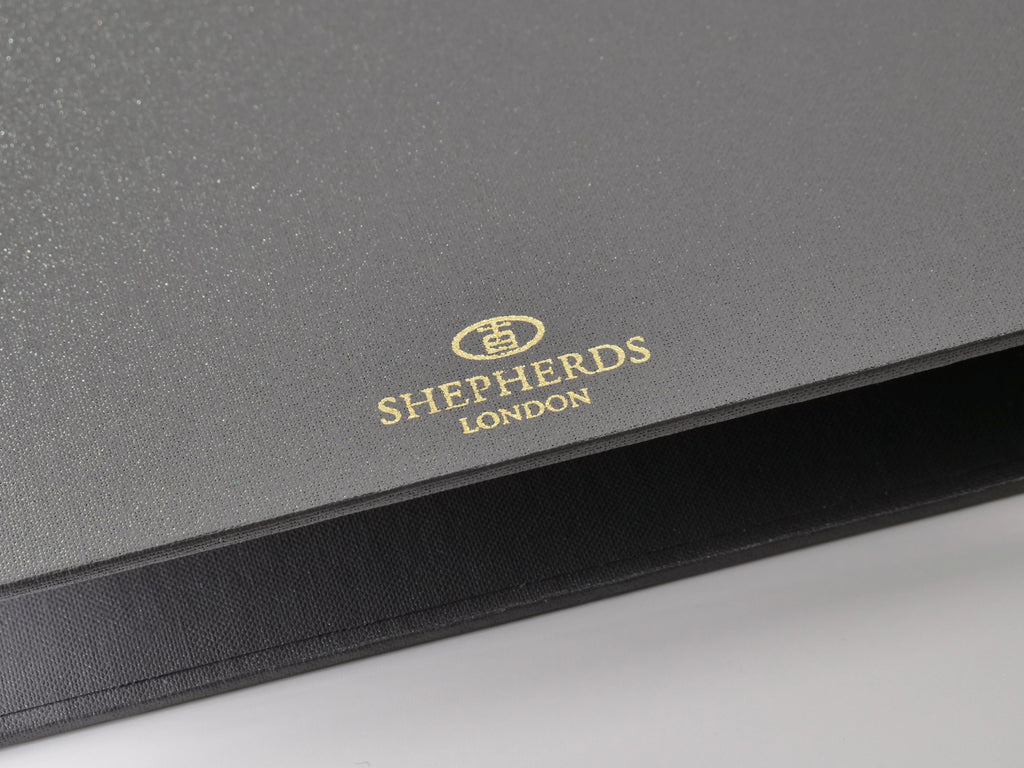 If you require lettering or a logo blocked in silver or gold to the front cover this can be arranged at our Bindery in Rochester Row. Please email: bindery@bookbinding.co.uk with your requirements for details.
