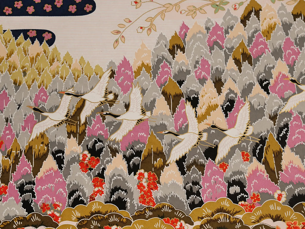A stunningly beautiful traditional Japanese silkscreen print - multicoloured non-repeating image perfect for lampshade making, bookbinding or framing.
