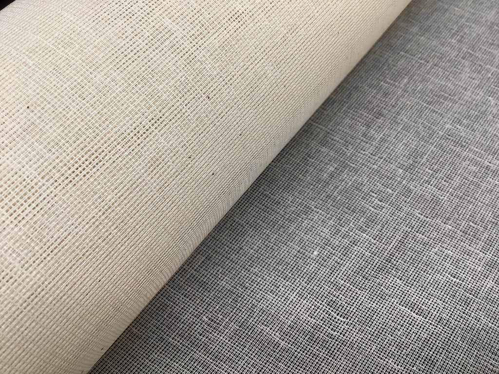 An open weave stiff cotton spine lining and construction material that takes adhesives well.