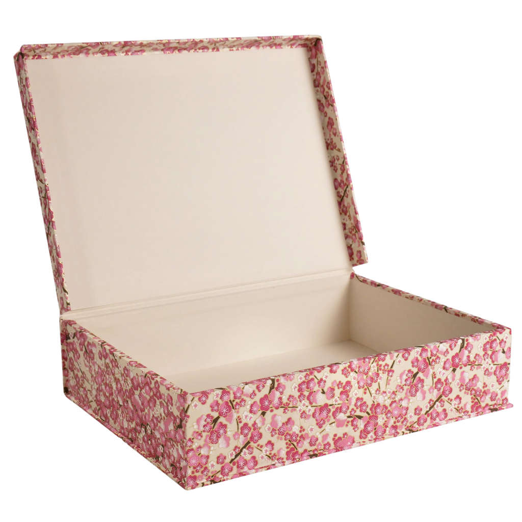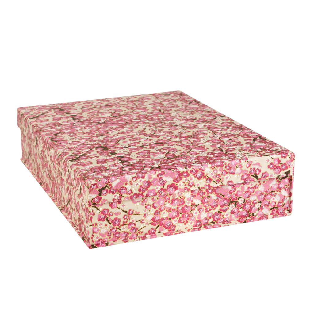 A box file to house A4 documents covered in a beautiful hand screen printed Chiyogami paper from Japan.