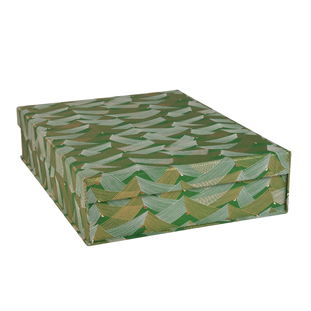 A box file to house A4 documents covered in a beautiful hand screen printed Chiyogami paper from Japan.