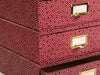 The front of the drawer has a brass card holder with a pull to open the drawer. Lined in a neutral plain paper. These boxes also look great in multiples when stacked together. Hand made in England.