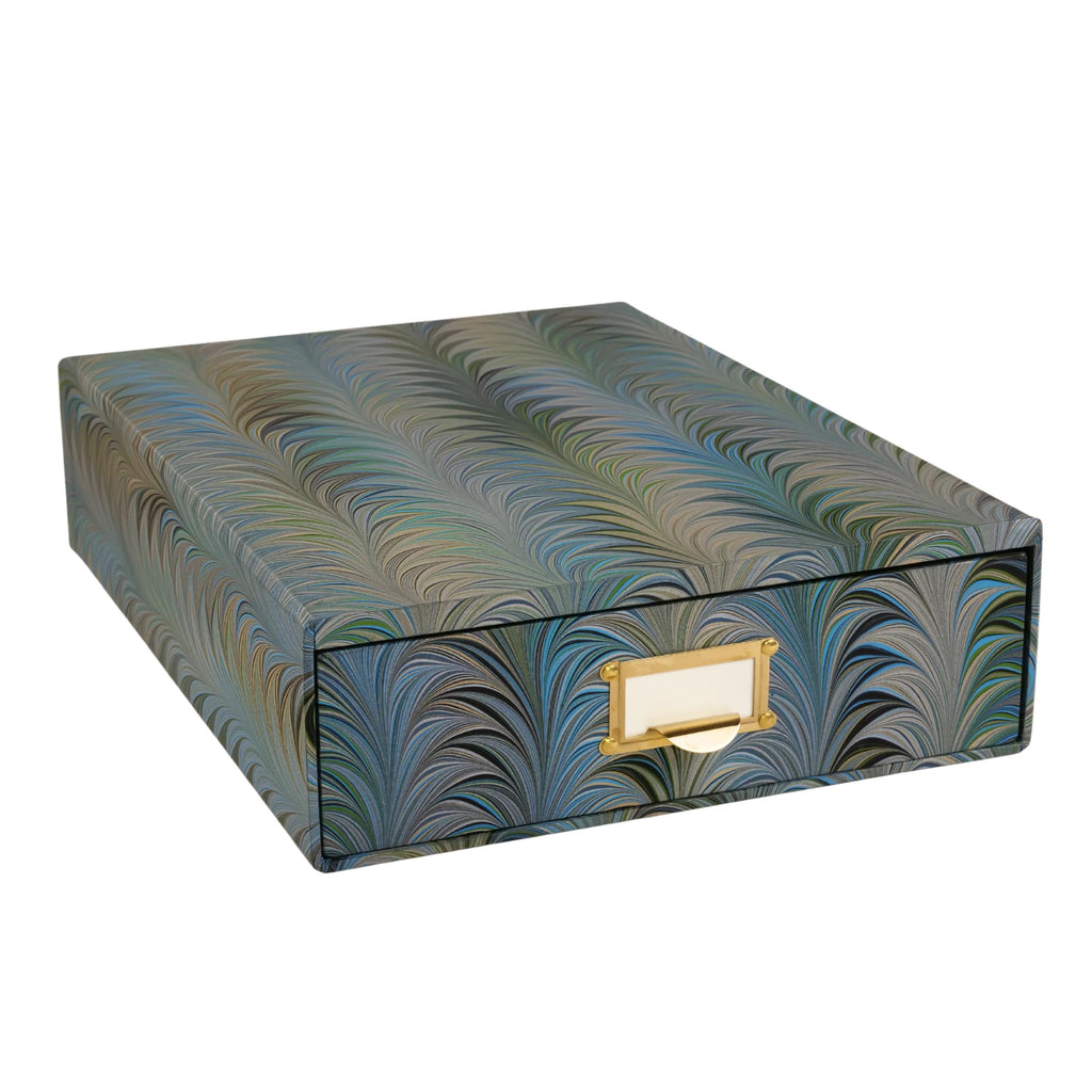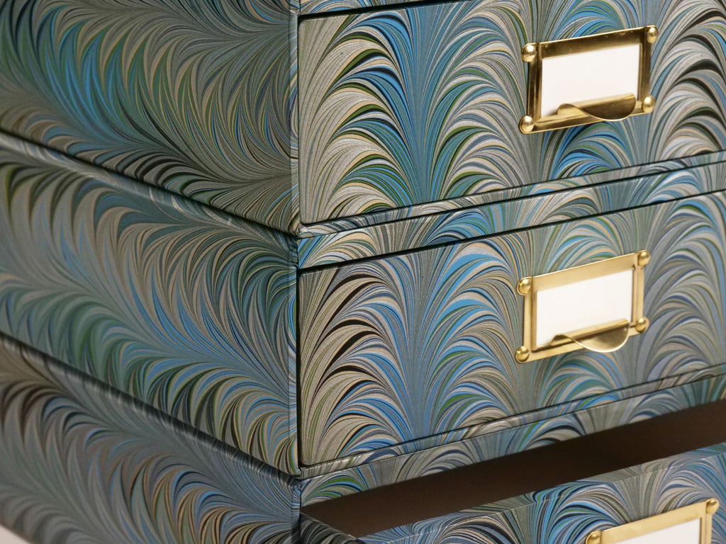 The front of the drawer has a brass card holder with a pull to open the drawer. Lined in a neutral plain paper. These boxes also look great in multiples when stacked together. Hand made in England.