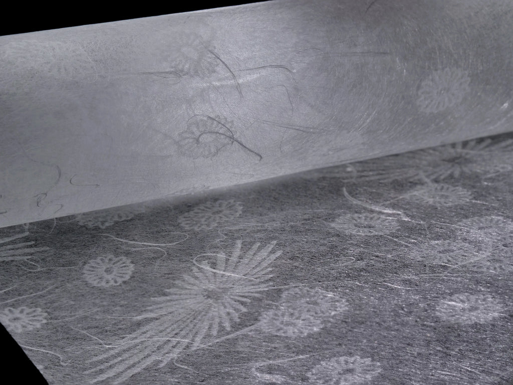 Fine, strong, translucent patterned tissue. Lightweight and resilient, this synthetic tissue is perfect for all your decorative needs. Watermark tissues are a great option for those working in collage, papier mache, and for gift-wrapping, shades, overlays, interleaving and wedding stationery. Pale grey (also available in white).