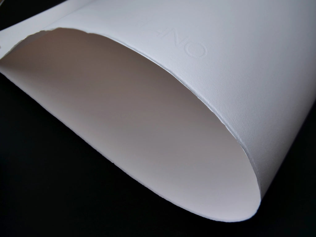 A prized blend of cotton (50%) and select raw materials are the main features of this paper. Smooth Surface. Particularly recommended for artists (watercolour, tempera, charcoal, graphite, wax, pastel, brush, etc). Fabriano 5 also performs beautifully when used for fine art prints (lithography, silkscreen), business cards, invitations, menus and so on. The 50cm sides have deckle edges and the "FABRIANO 5 50% COTTON" watermark runs parallel to them. It is acid-free to guarantee excellent permanence and resistance to ageing.
