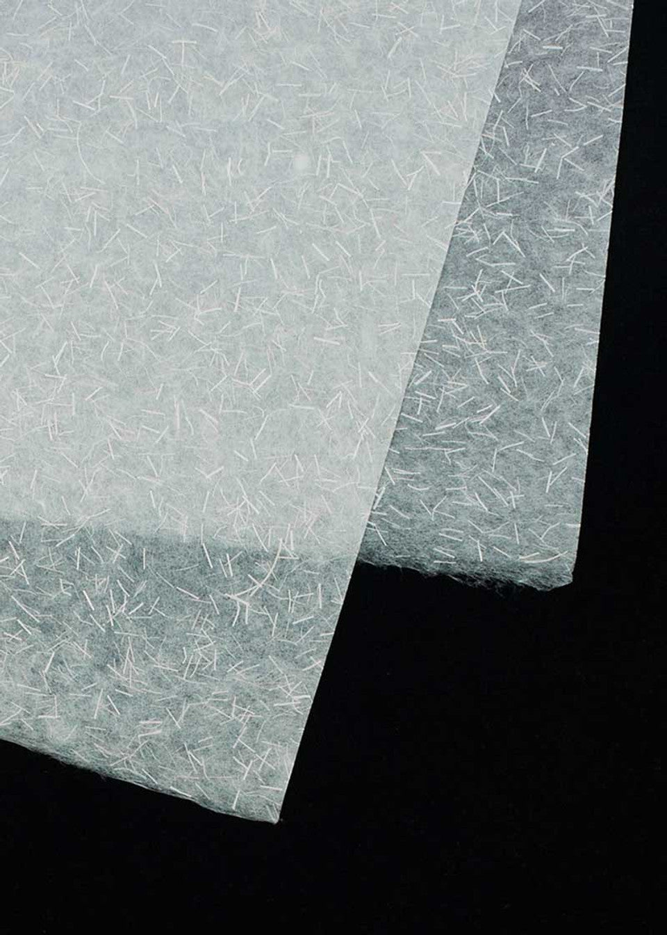 This tissue takes colour well and is very suitable for watercolour collage. The short straight decorative fibres in this paper also look beautiful when back lit, making this paper a great choice for filtering light through a window or lamp.